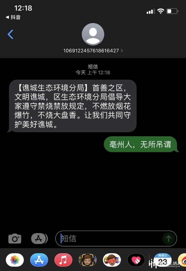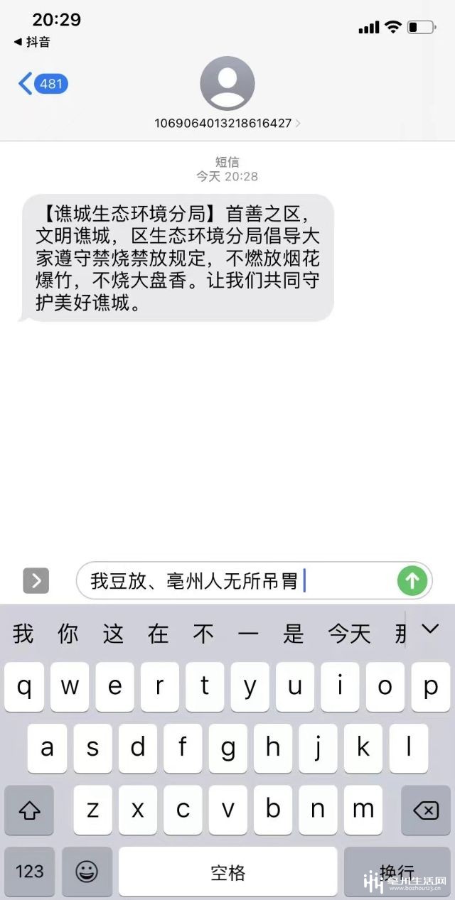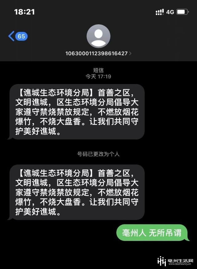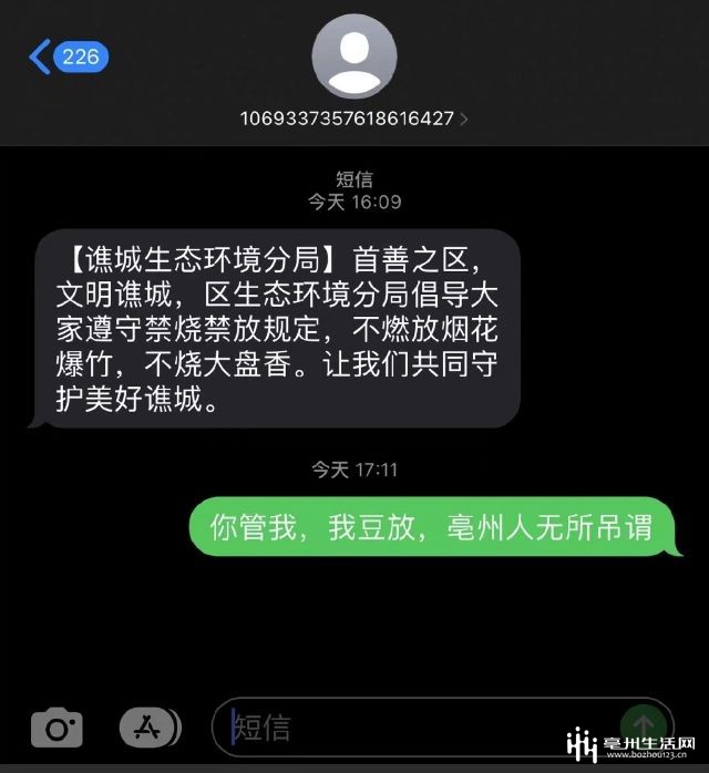 谯城区环保局发了一条宣传禁燃禁放的短信,然后。。。就被玩坏了!