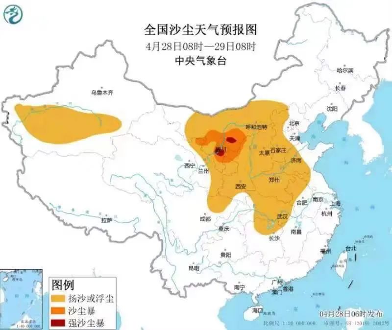 中央气象台4月28日06时发布沙尘暴蓝色预警。受冷空气大风影响,预计4月28日08时至29日08时,新疆南部、内蒙古中西部、甘肃北部和东部、宁夏、陕西、四川盆地北部、山西、河北西部、河南、山东中西部、湖北、湖南北部、安徽北部、江苏西北部等地的部分地区有扬沙或浮尘天气,其中,内蒙古西南部、甘肃东北部、宁夏中北部、陕西西北部等地的部分地区有沙尘暴,局地有强沙尘暴。