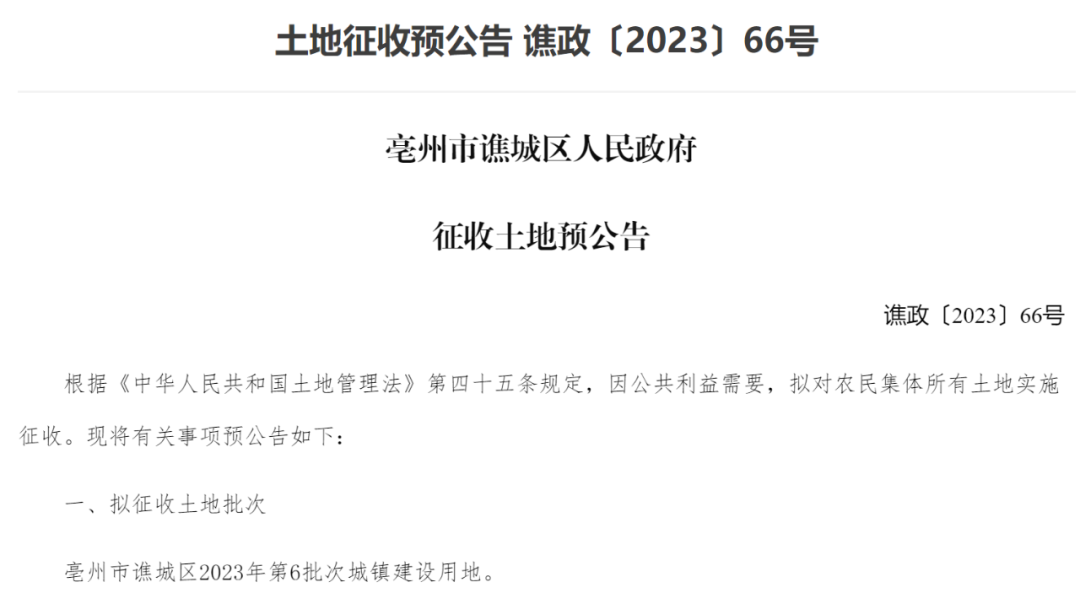 发布征收土地预公告