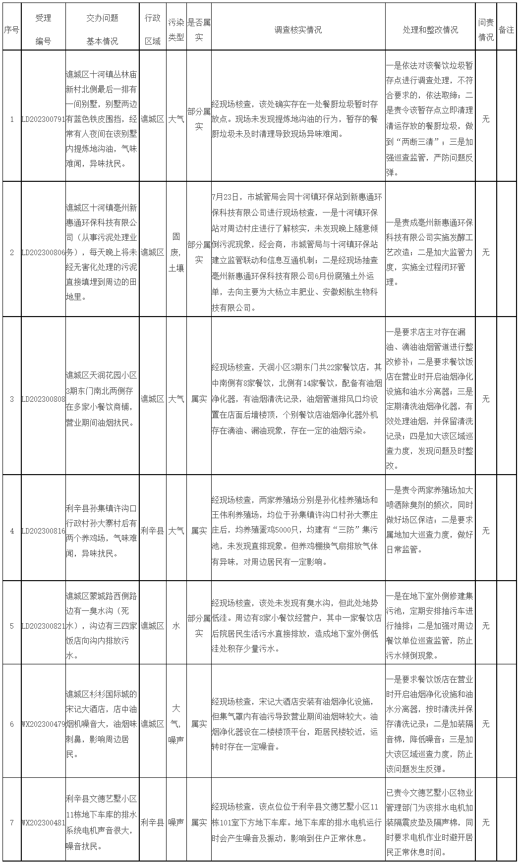 安徽省第二生态环境保护督察组7月19日(第十五批)交办我市的7件信访件,截至7月25日,已办结0件。其中,经查属实的7件,不属实0件,责令整改5件。