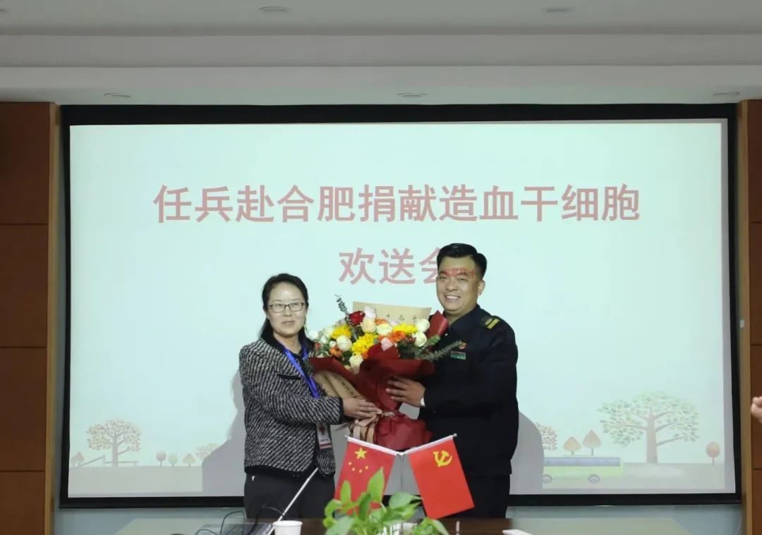 3月21日,市红十字会常务副会长王朝颖、亳州公交集团总经理宋燕一行为任兵举行赴合肥捐献造血干细胞欢送仪式。