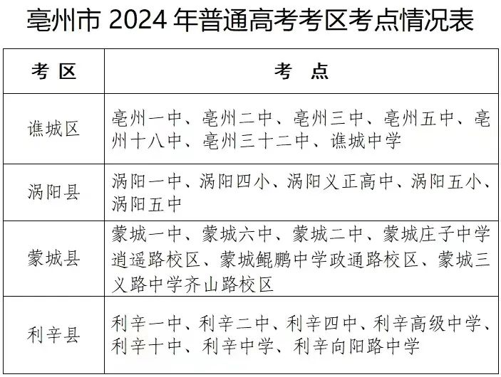 亳州高考考点公布