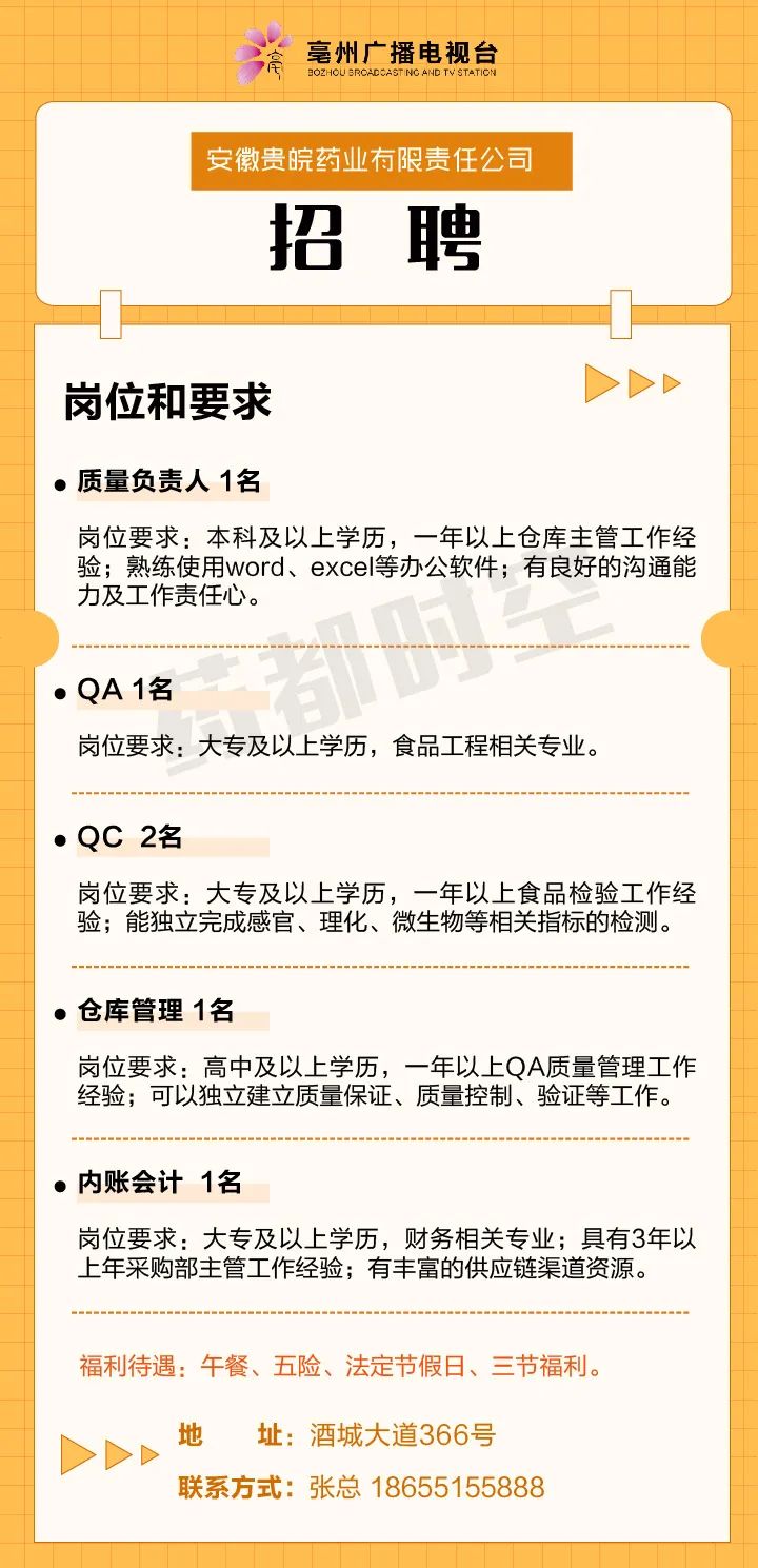 亳州这些企业正在招人