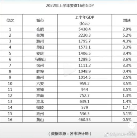 上半年安徽16市GDP排名#来了!亳州离蚌埠只差一点点